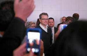 DAVOS/SWITZERLAND, 22JAN14 – Matt Damon (C), Actor and Co-Founder, Water.org, USA is captured before the session ‘Safe Water for All’ at the Annual Meeting 2014 of the World Economic Forum at the congress centre in Davos, January 22, 2014.